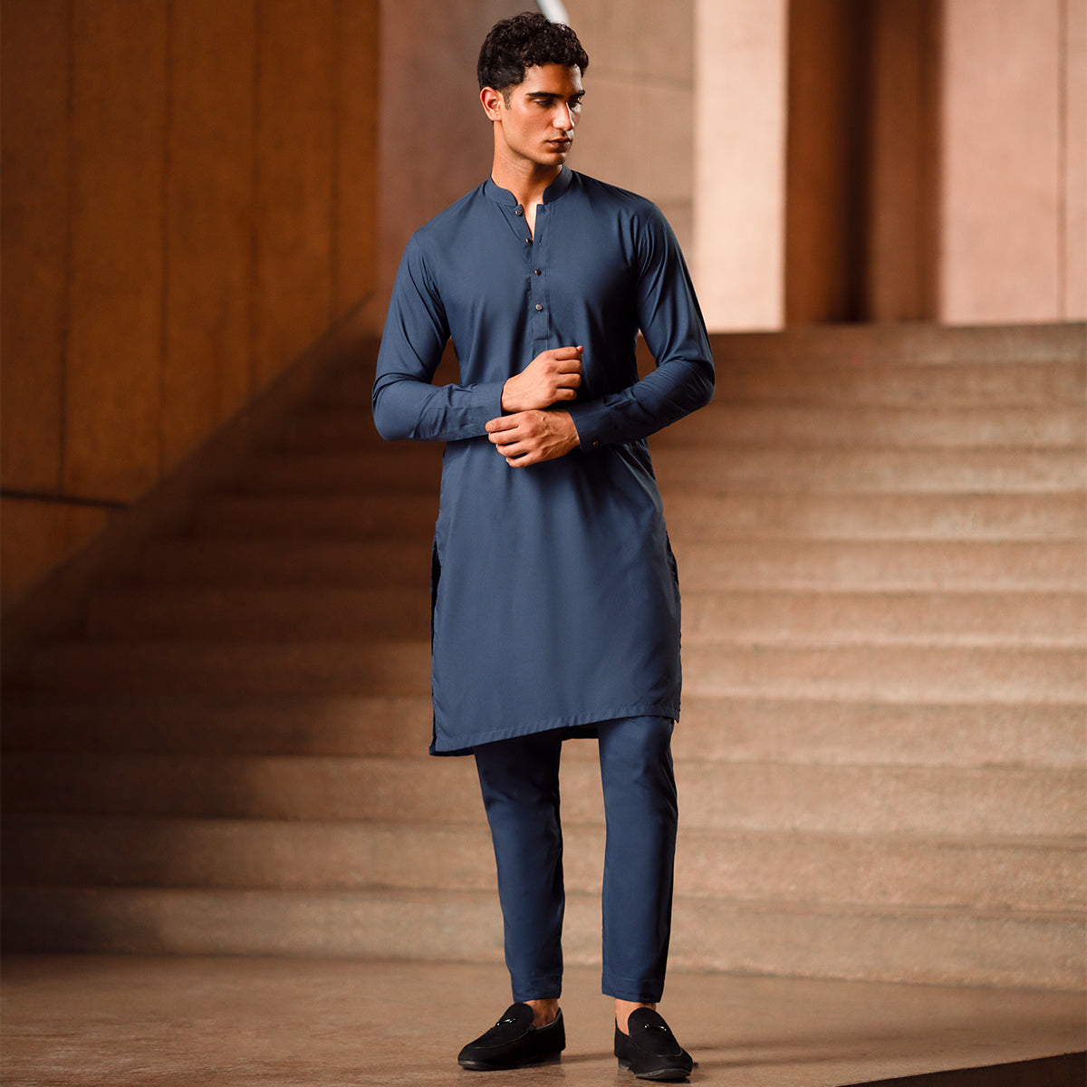The Latha Collection is designed for classic men who value sharp and crisp attire. Our Latha range provides durability and comfort, offering a timeless and sturdy look with a modern drape. Perfect for those who seek a fuss-free, high-performance fabric that lasts all day long.